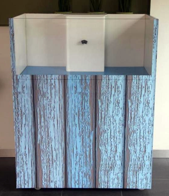 The front side is double glazed and trasparent, the other sides are white foam PVC make this model highly stylish